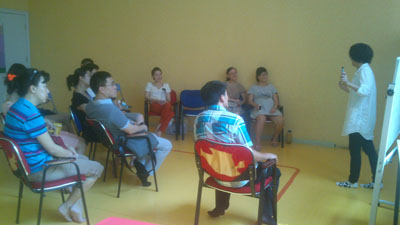 酷暑抵挡不了家长与老师互动的心,认真听讲中